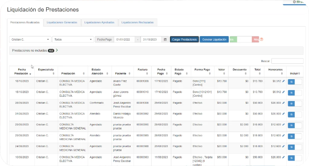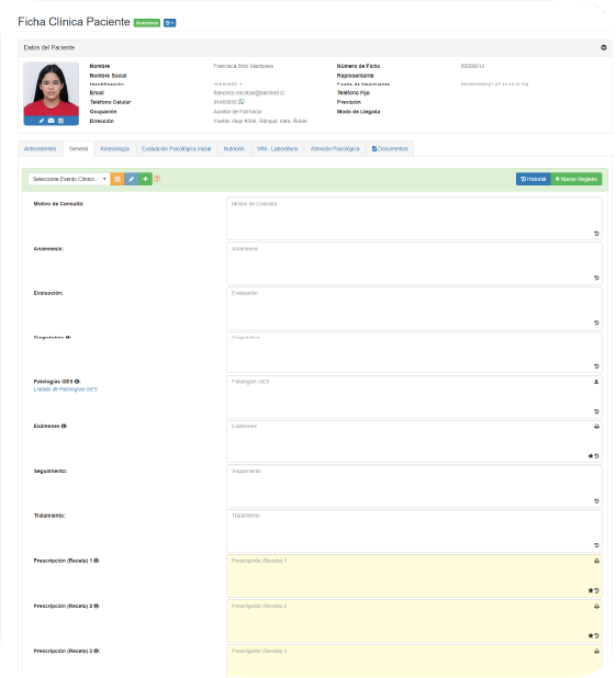 atenciones de sus pacientes, incorporando exámenes,